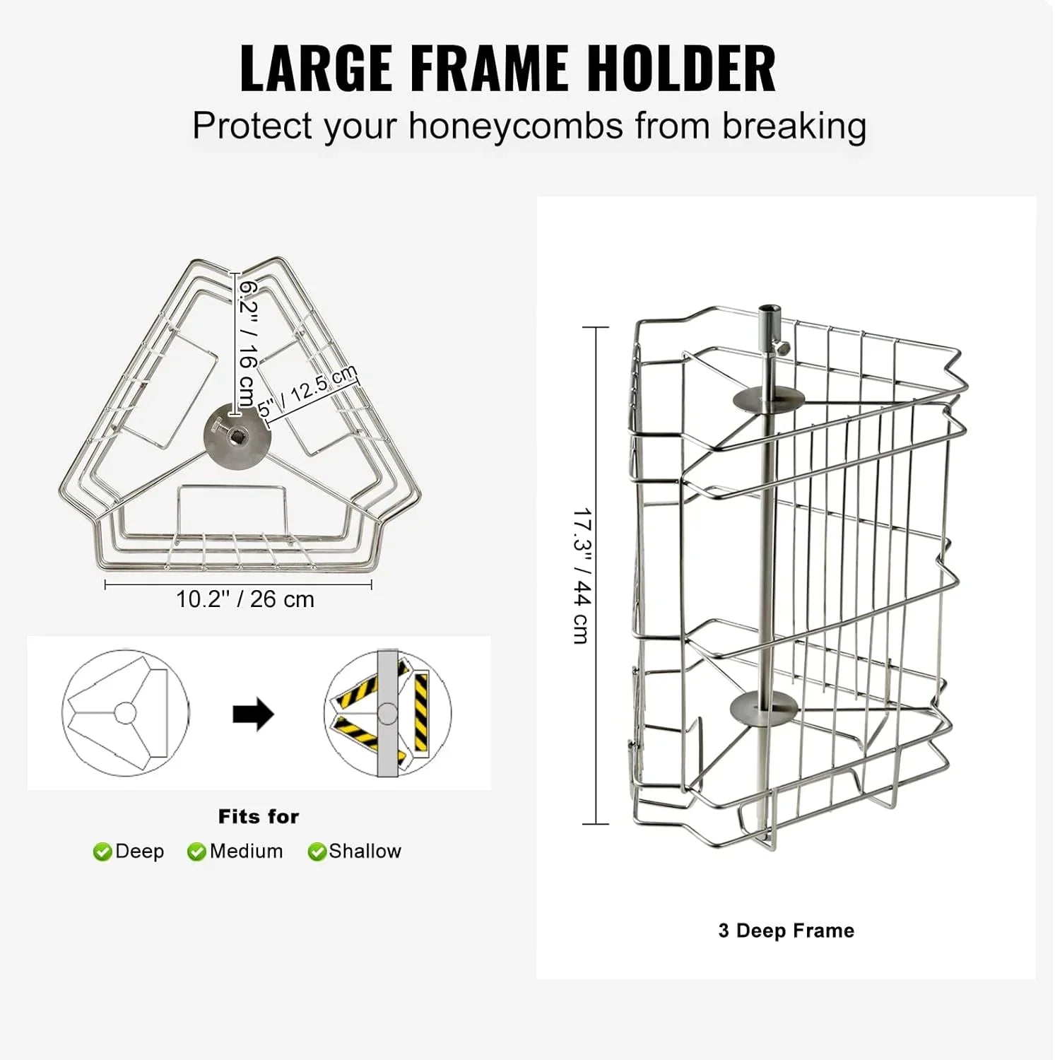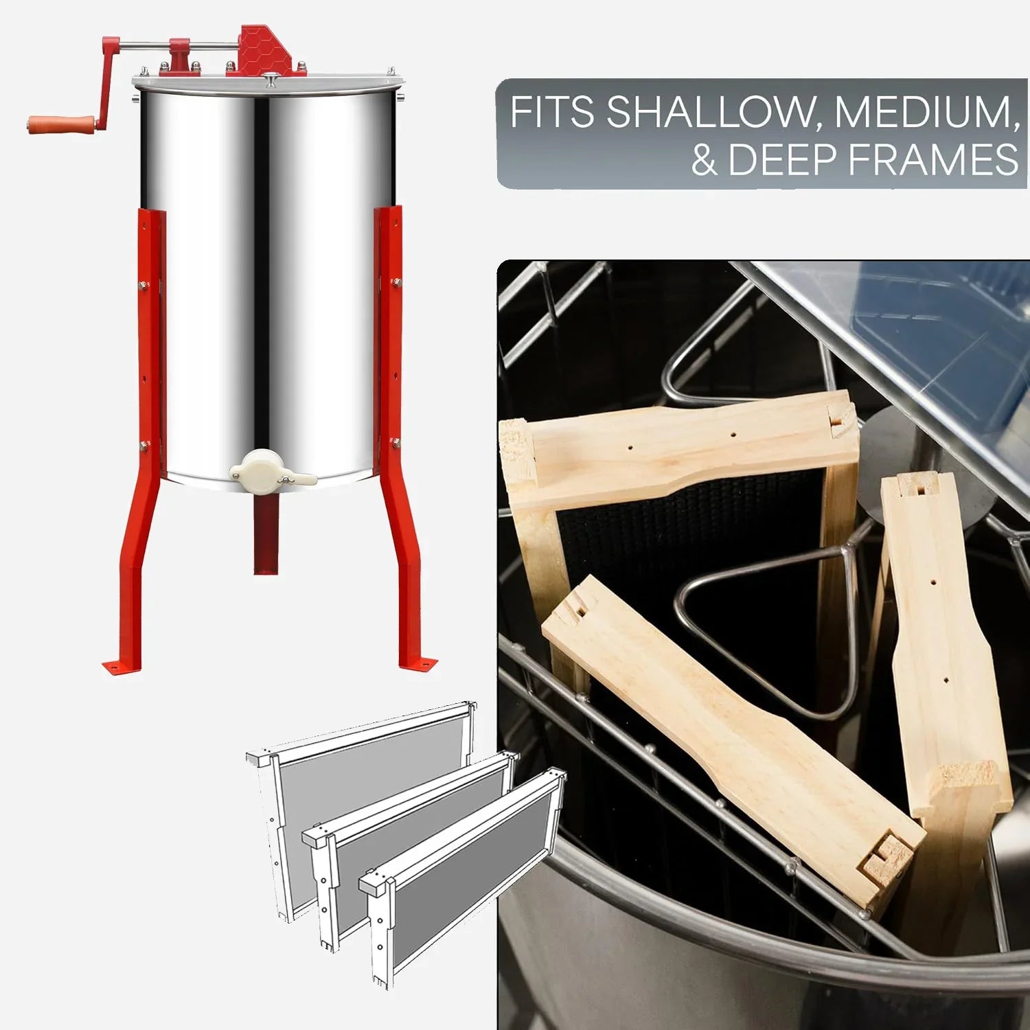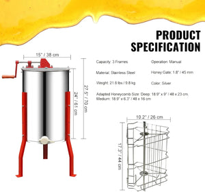 Whether you are a professional beekeeper or an amateur, this honey extractor ensures that you can harvest honey smoothly and efficiently. This honey extractor has 3 frames and is made of food-grade stainless steel. It does not require electrical support and is particularly suitable for outdoor or power-impaired environments. It has a simple structure and a low failure rate, and users can complete daily cleaning and maintenance by themselves. It is an ideal choice for small apiaries and amateur beekeepers.